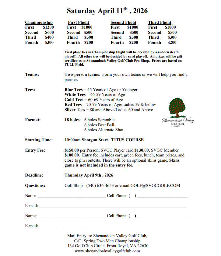 SVGC SPRING 2-MAN: APRIL 11TH, 2026-OPEN TO ALL