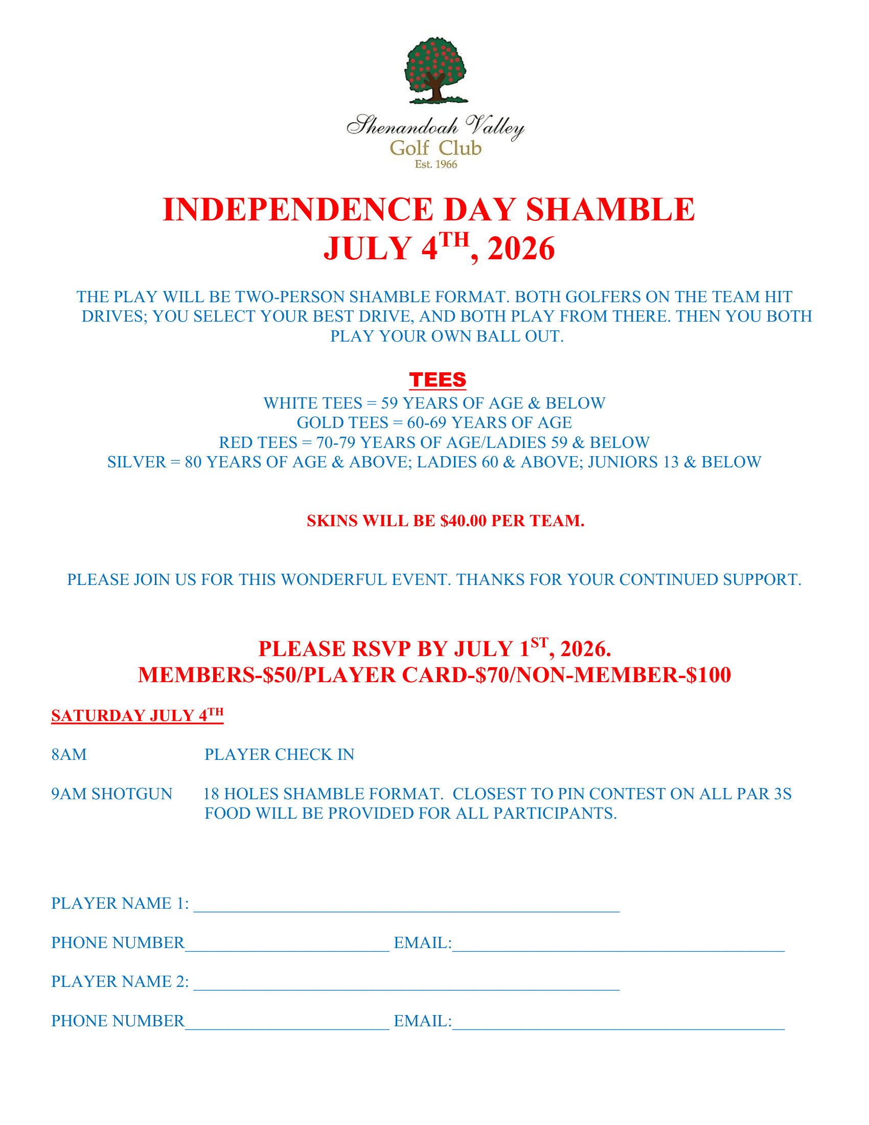 MEMBERS-$50/PLAYER CARD-$70/NON-MEMBER-$100